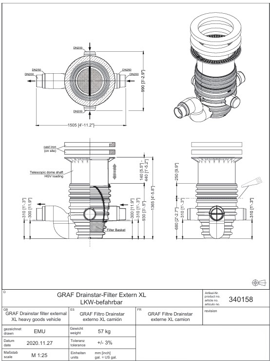 Tato varianta filtrační šachty je určena pro instalaci v plochách se zatížením nákladními vozidly, například v průmyslových areálech, logistických centrech nebo v příjezdových komunikacích.