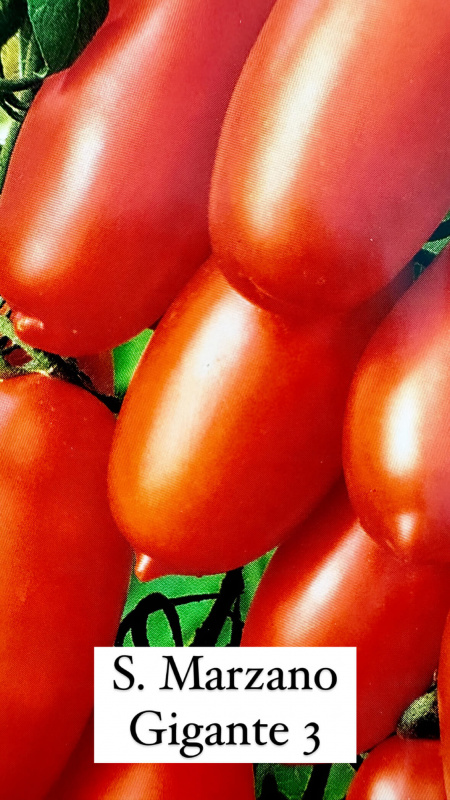| Rajče tyčkové - S. Marzano Gigante 3 (30 sem.) | Středně pozdní odrůda typu San Marzano s nepraskajícími, pevnými plody, vhodnými především pro kuchyňské zpracování. Ideální pro pěstování ve skleníkách, fóliovníkách i na polích. | Semena se vysévají do truhlíků či výsevných misek do speciálního výsevního substrátu. Sazeničky je možné okolo 5. týdně přesadit do zahrady ve vzdálenosti 3-4/m2. |